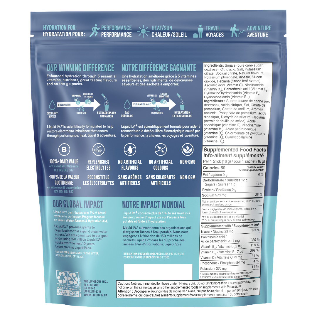 - HYDRATION AID: We believe a healthier world for all begins with equitable access to clean water. Every time you buy Liquid I.V.®, you are supporting grants to organisations that expand clean water access globally.